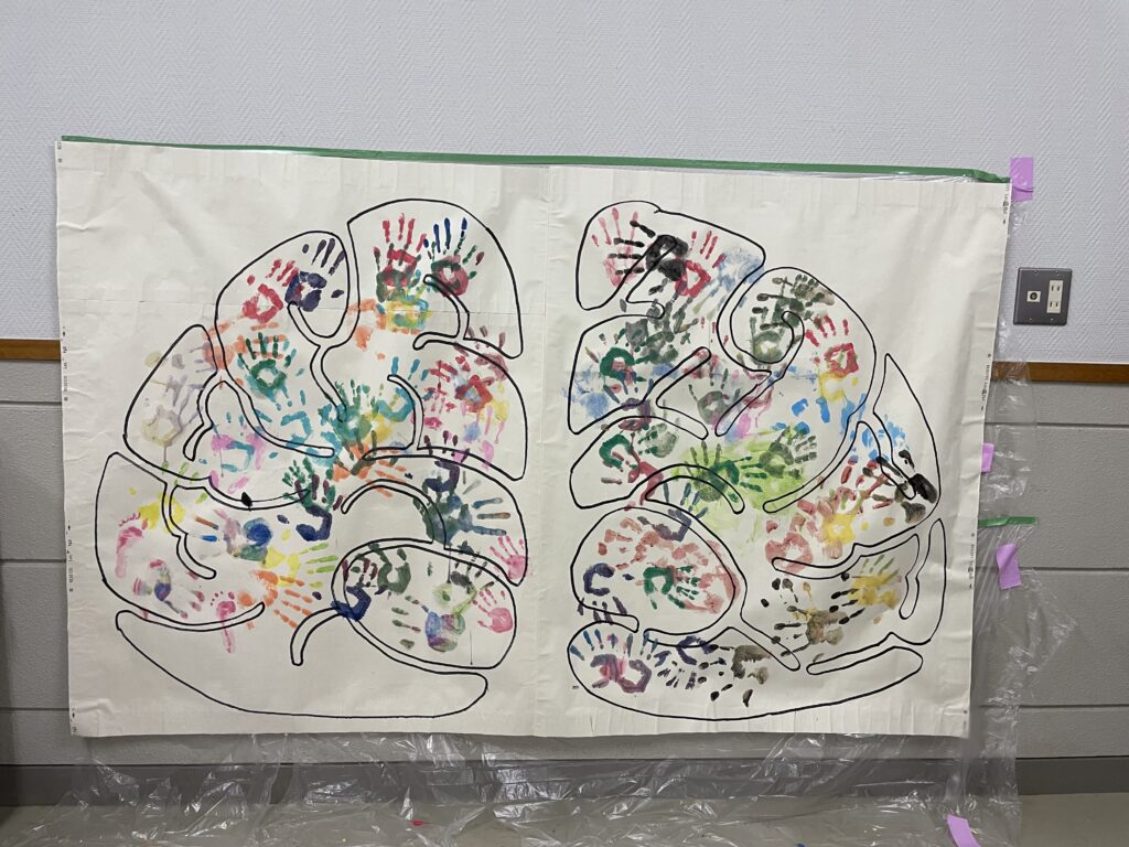 さつまいもを使った調理実習、みんなの手形で作品を作ったり